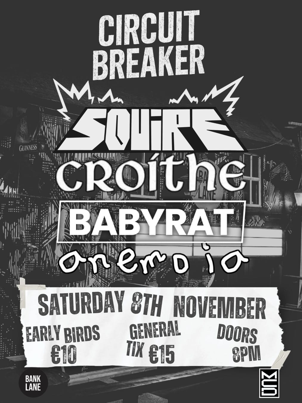 Kicking things off in style on Saturday, November 8th, the debut event features four killer acts—Squire (local support), Croíthe, BABYRAT, and Anemoia—promising a stacked night of new music discovery in the heart of Waterford.
